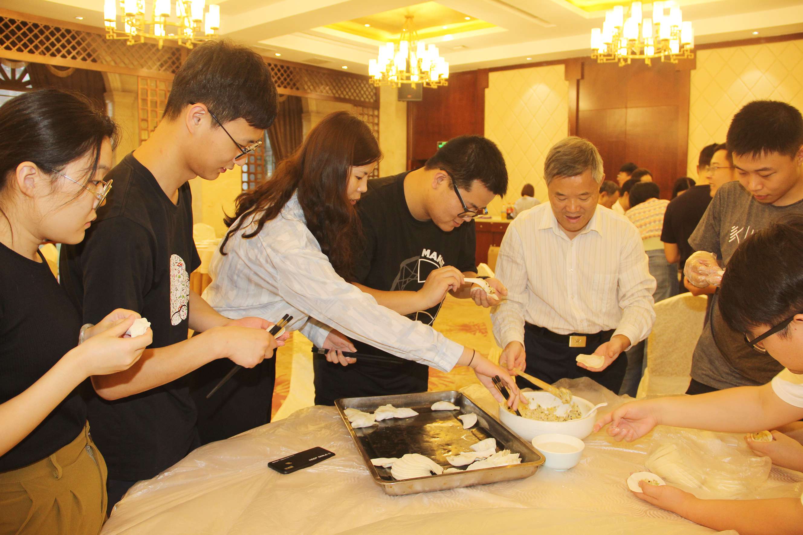 联谊活动多欢欣。李修元将一张饺子皮放在左手心,用勺子舀适量馅放在饺皮的中间,再用右手指蘸点水均匀地抹在饺皮的边缘,最后收口将两片面皮捏紧,一个漂漂亮亮的饺子呈现在大家面前,大家鼓掌欢呼,竖大拇指点赞。看人挑担不吃力。轮到大学生们包饺子就不那么顺手了,大家都觉得看似容易的包饺子其实学问还挺大……不知不觉一个多小时过去了,大家一点也不觉得累,包好的饺子整齐排列,看起来有模有样。在此之前大家还进行了集体互动踩气球等游戏,活动现场气氛其乐融融。