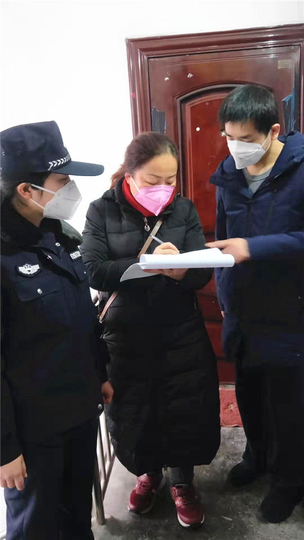 三九社区1月28开始启动第一次新冠病毒不漏一户、不漏一人的大排查,发现社区居民向爱于1月14日从武汉师范大学返津,龚阳俊在武汉一企业打工于1月22返津,社区配合几江社区卫生服务中心医生、驻居警察、上门为他(她)们测体温,并发宣传资料到手上,嘱咐他们一定要居家隔离14天,发热一定要及时报告。