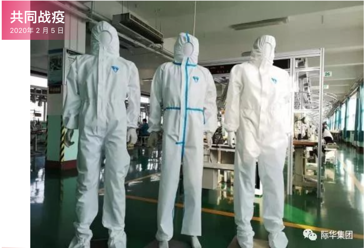从际华3543公司专题会了解,公司将全力扩大产能,逐步实现4-6条生产线,2月5日防护服制作突破800套,力争2月6日生产能力达到1000套/天,2月15日防护服生产能力突破3000套/天。