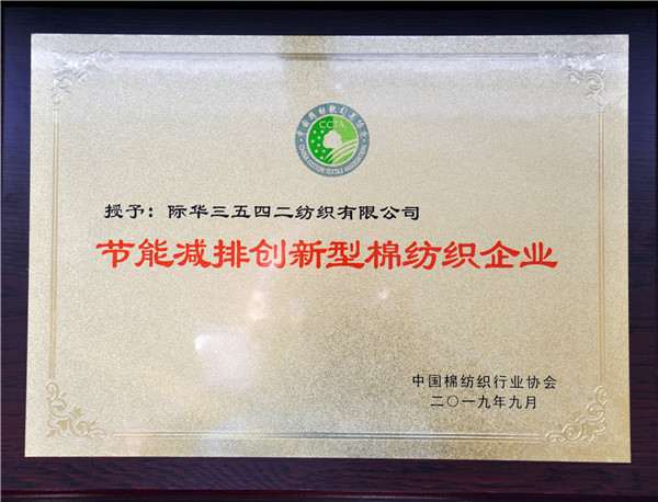 际华3542公司荣获“节能减排创新型棉纺织企业”称号