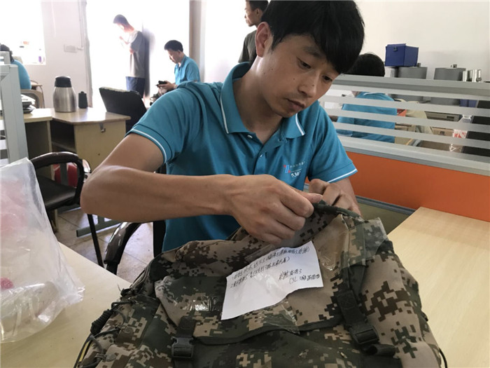 行万里路为服务,情系部队为官兵。本着此次服务的宗旨,团队基本没有打扰部队的正常训练和工作。因部队大多在外驻训,服务团队征得批准后,深入一线进行作业。服务点大都远离城区,人烟稀少,因此,服务团队基本都要行走一个小时以上的路程从住宿地到达服务点。到达目的地,大家紧锣密鼓装卸工具,共同协作,相互扶持,收集待修物品开始作业,中午经常匆匆吃过饭之后,继续加班加点工作,晚上披星戴月往回赶。目前维修数近两千套件,包括服装、鞋靴、携行具。由于携行具长期高强度使用导致损坏严重,所带便携设备有时满足不了维修需求,且携行具普遍厚重,在设备解决不了的情况下,维修人员全靠手工缝补,维修人员李小亚手被扎得伤痕累累,但他每次都是吮掉血迹,继续埋头缝补。葛铭文在团队中主要负责各类鞋靴的翻新、维修、整理……鞋子是易耗品,数量多,损坏程度大,修补起来费时费力。但是不管鞋子有多脏,损坏程度有多大,他都尽全力修护,并不时向官兵们讲解保养鞋子的要领。官兵们拿着焕然一新的物品,无不感叹服务团队过硬的技术。