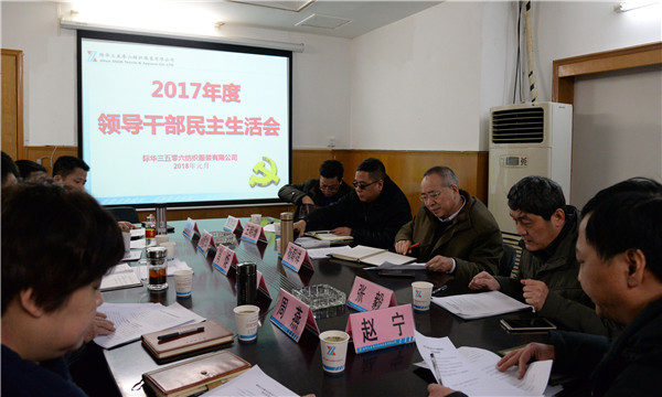 根据集团公司《关于召开2017年度领导干部民主生活会和组织生活》的要求,在集团年度工作会议结束后,际华三五零六公司党委于1月31日及时召开了领导班子民主生活会。际华集团副总经理杨朝祥、市场部部长王明增参加了本次会议并进行督导,会议由公司党委书记、执行董事张毅主持。