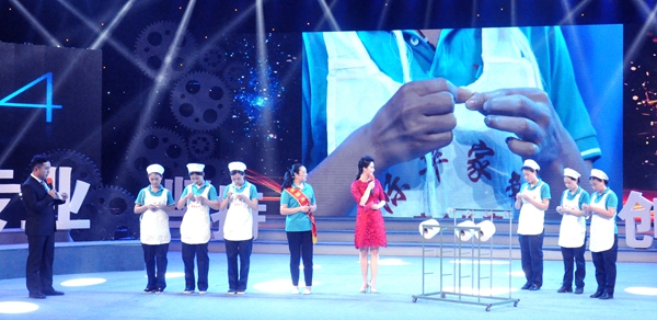 5月2日晚8点,在襄阳广播电视台演播大厅,“巨星闪耀”——2017年襄阳市庆祝“五一”国际劳动节特别节目正在直播。际华三五四二纺织有限公司纺织女工的绝活——“打结表演”,以其精湛的技艺和工匠精神,成为万众瞩目的焦点。