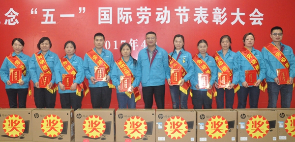 会上,公司领导为先进集体和个人颁奖。2017年襄阳五一劳动奖章获得者刘兰兰和全国青年文明号,细纱丙班六组小组长吴姗姗作交流发言。
